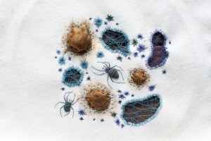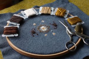 I am generally a very impulsive maker, all of the embroidery work that I do is freehand, I don’t use patterns or transfer drawings onto the fabric before I begin. I work with air erasable pens and draw directly on the fabric, it means that each piece I make is very fluid, and prone to change. As with any form of textile art, as energetic as your beginning may be, the slow & methodical nature of sewing makes for a final design that is nothing like what you first imagined, and that is a dynamic that I so enjoy.