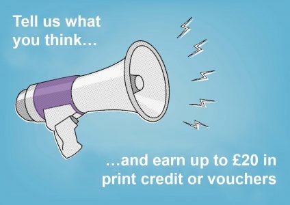 - You can choose to have print credit or Amazon vouchers for participating: £10 for a tour, £20 for attending a focus group.