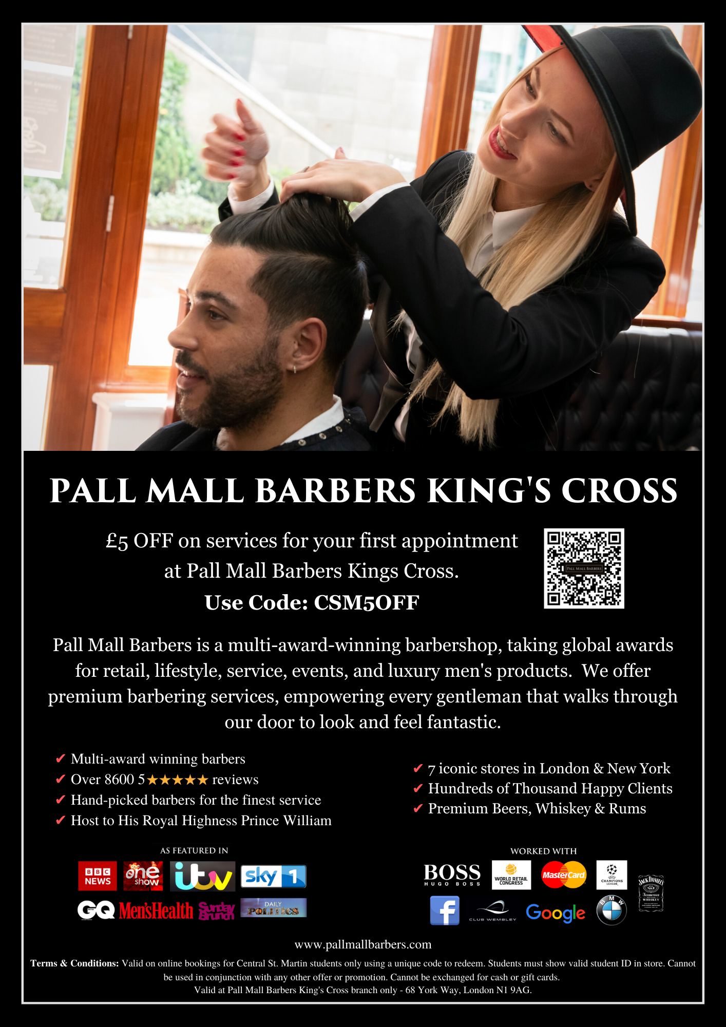 There are loads of great shops, restaurants and cultural institutions around King's Cross and Archway. Take a look at our virtual goodie bag of offers from some of our favourite local spots. Simply download the vouchers and use them alongside your CSM ID card. These offers are only valid for current students at Central Saint Martins.