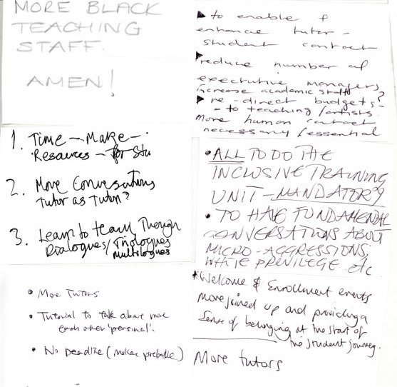 These “ballots” were collected, photocopied and sent via Panesar to Professor Simon Ofield-Kerr, UAL Academic Deputy Vice-Chancellor. Ofield-Kerr was also in attendance on that day, and delivered the conference’s closing remarks. Panesar reports that feedback from participants on the session has been overwhelmingly positive.