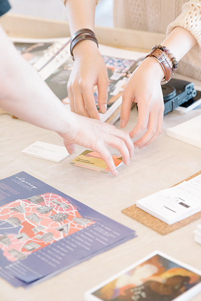 The design direction of Café ODYSSEY was mainly driven by research insights, which are then visually interpreted as different metaphors of elements in the cafés. For instance, the coffee cart set up at Rye Lane is a metaphor of the threshold, which performs a boundary zone between the created experience and the daily experience in Peckham. At the coffee cart, passers-by could get a free coffee which acts as an invitation for them to start the experience; it is also the tool which makes people think of every day’s object to create mental inclusion during the experience. Instead of showing items and prices, the specially-designed receipts show a map, which indicates different trails, shops and organisations that all, in one way or another, contribute to the contested narrative of gentrification in the area.
