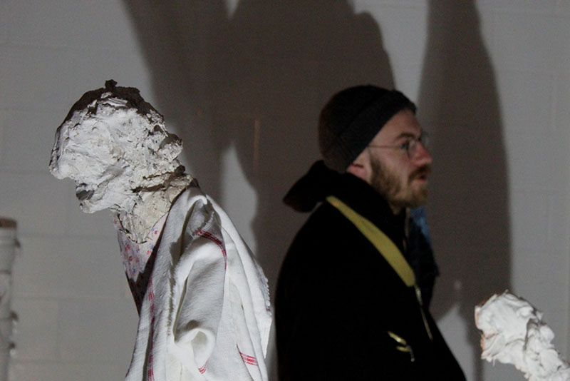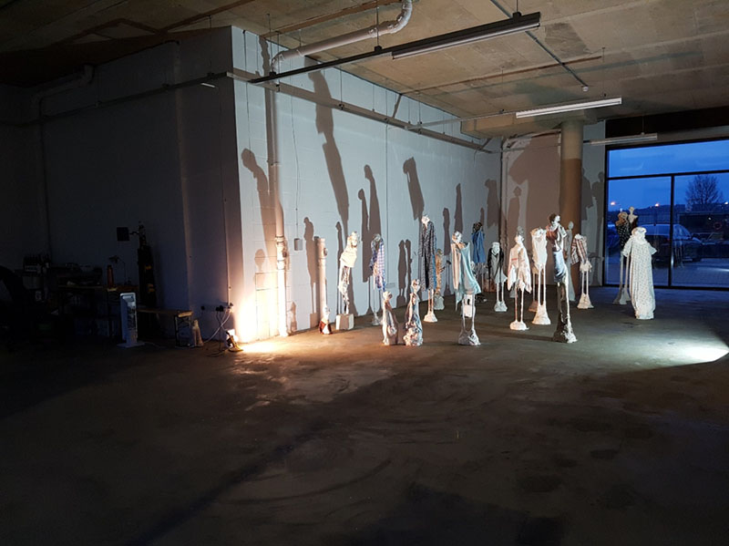 It took some time to get the lighting right and playing around with it was fun. It was a great experience to be able to work outside of my studio in such a large space, and to be out of my comfort zone in as much as I didn’t know anyone and it wasn’t my local area. I’d like to pursue the work and to think about adding sound to the installation, there is something very theatrical and I’d like to see how that could possibly bring a different narrative to it.