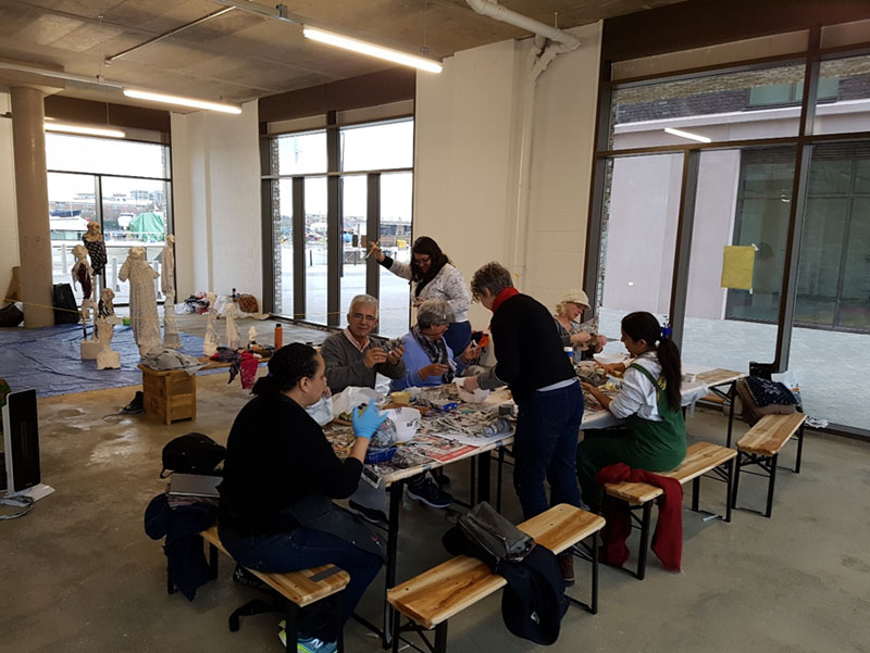 Part of the residency brief was that there needed to be some community engagement and I decided to run a sculpture workshop with papier mache using left over recyclable materials. I did this for five consecutive Sundays and it was an interesting experience. People from all over London came to participate.