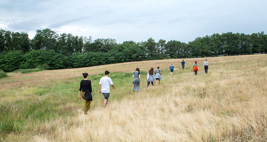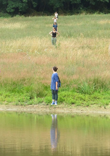 The smell, the sound of the birds and insects, the moist, the movement of the grasses and meadow flowers in the wind, the horses’ presence all around, the reflections in the smooth waters of lakes and the feel of the bumpy soil and crispy vegetation beneath our feet: the constant communication and collaboration with one-another – people acting as vertical elements in the landscape, as measuring tools, as reference point.