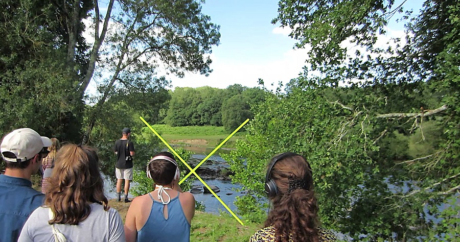 Through headphones, the sense of hearing was stimulated. Tracking the specific position of the participants along the walk, the sound aimed to isolate the context and to focus on the selected environment, enhancing the detail and the purity of the sound, as a both visual and aural zoom-in.