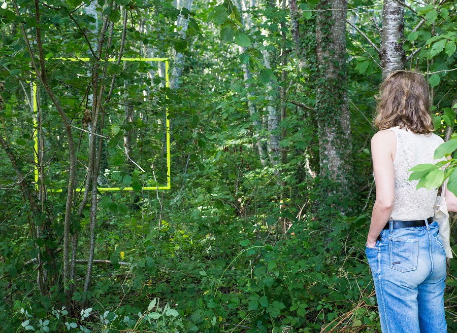 Visually, the installation guided the subjects on specific elements of the environment, such as the river, the open fields and the forest, through the alignment of geometric shapes.
