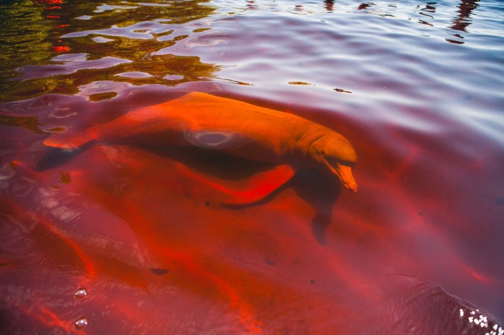 We woke the next day to discover we had docked at Praia Grande beach, which is a long skinny island on the Rio Negro with white sand and red water, vultures on the beach, and cashew fruit growing on the trees. Later that morning we were taken on an excursion to swim with Amazon river dolphins, at a place where they are fed and interacted with in small groups but are still wild, so they could come and go as they pleased. It was a totally bizarre experience, as the dolphins would brush up next to you and swim between your legs, and were not shy at all. Their skin was incredibly soft, and the whole experience was not like anything else! At this point it was really beginning to feel like we were on a luxury holiday rather than a residency, but I really appreciated this time to absorb and understand everything that was around us with no fixed agenda. In fact, it was an incredibly moving first two days and myself and others felt close to tears at some points because of just how awe-inspiring it was.