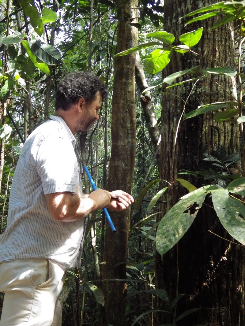 Extracting a sample from a tree in the Adolpho Ducke Reserve