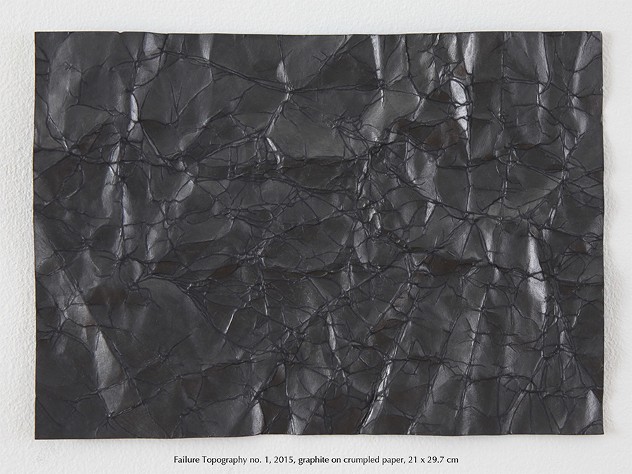 Image: Rachel Bacon – Failure Topography no. 1, 2015, graphite on crumpled paper, 21 x 29.7 cm
