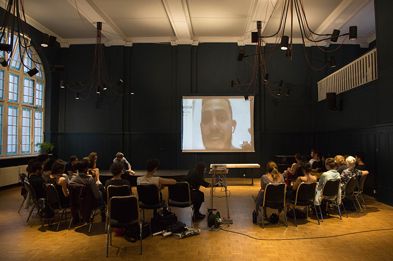 For Refugee Week Berlin I curated the group exhibition The Vivid Unknown in project room ROSALUX and other locations in Berlin, with artists Elisa Dierson, Monika Dorniak, Domenique Himmelsbach de Vries, Lingji Hon, Katja Marie Voigt, Valentyn Odnoviun, Felix Stumpf, Çağlar Tahiroğlu, Matteo Valerio, Raul Walch. (Matteo is a postgraduate at MA Fine Art (CSM), 2017, and Çağlar Tahiroğlu a postgraduate at MA Art and Science (CSM), 2018.) The title comes from Philip Glass’s music for the film Naqoyqatsi, Hopi for ‘life as war’ i. The exhibition reflected the world in our Anthropocene era, now that the global market is the major economic and cultural force, as control of artificial systems clashes with the organic world, itself undergoing extreme transformations leading to social disharmony. Our interactions are now hyper-mobile, and they interweave in digital space; the physical settlements of marginalised groups are constantly disturbed. Past, present and prospective natural disasters caused by climate change and war force people to leave home, escaping precariously into the unknown.