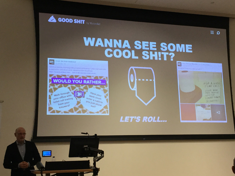 During the talk, Missen presented some of the most successful campaigns WaterAid has led, for example, Out of order, a multi-media exhibition featuring female artists, exploring what it means to be a woman living without toilet access and the impact that lack of decent, private toilets has on 1 in 3 women across the globe.