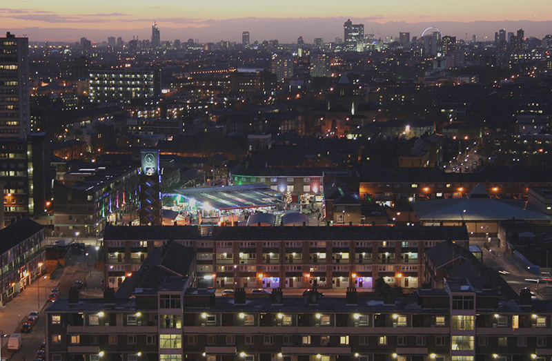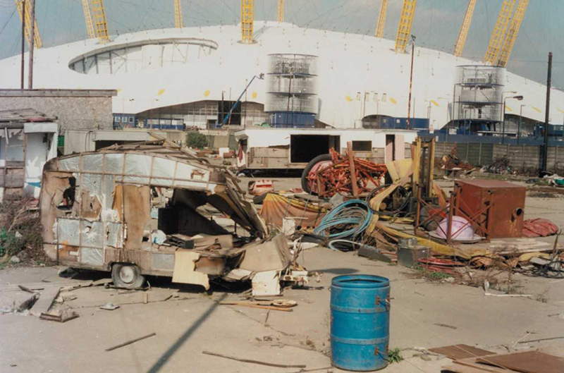 A 2002 film observing the urban and implied social changes of East London and the environment around the Millennium Dome (an 800 million pound state-financed structure for a one year planned exhibition) that Raban described as “an incredible waste of money” and one he sees as emblematic of the New Labour government of the time- the film immerses its audience into a series of city-scape shots, some moving, some static, collectively meditating upon an industrial landscape undergoing social transformation and an uncertain future. Following the screening, Cunningham spoke about his process of inspiration for the film’s feature of a continuous industrial-sounding drone. Triggered by experiencing the echoing environment of the Millennium Dome’s interior, he chose to re-create that audio environment using techniques he had been working on for his installations of the same period. This involved the idea of capturing a sound and feeding it back to itself repeatedly until it created the desired cacophony of a potentially endless echo.