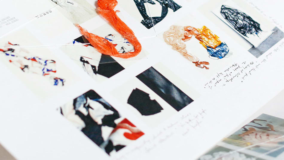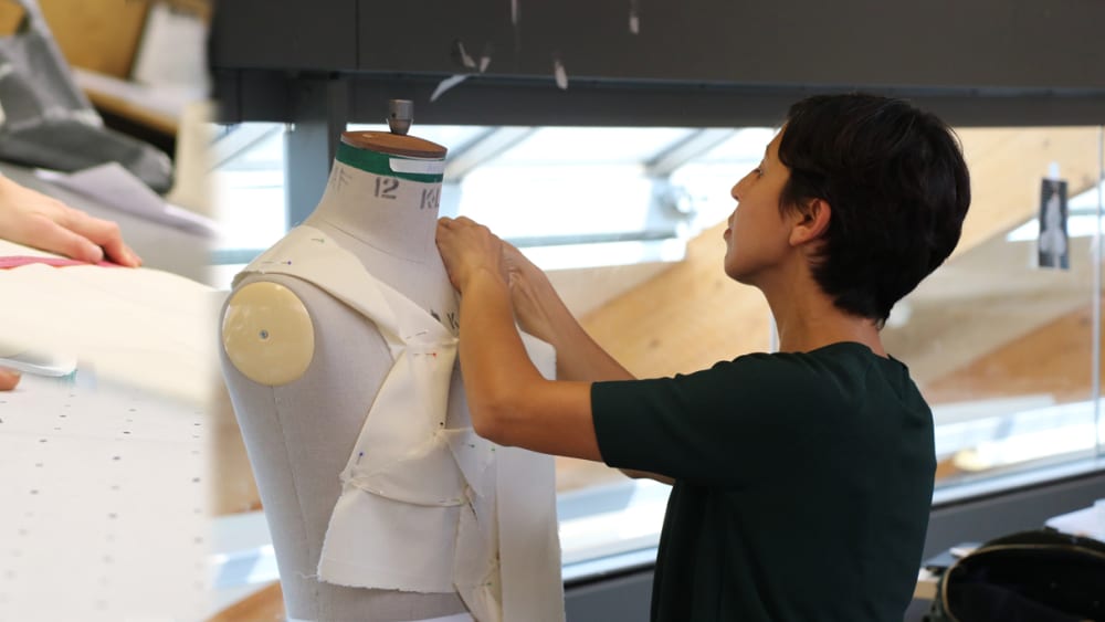 Image: Kaya Belmont working in the studio, 2023 Design pathway, London College of Fashion, UAL | Photograph: Alys Tomlinson -